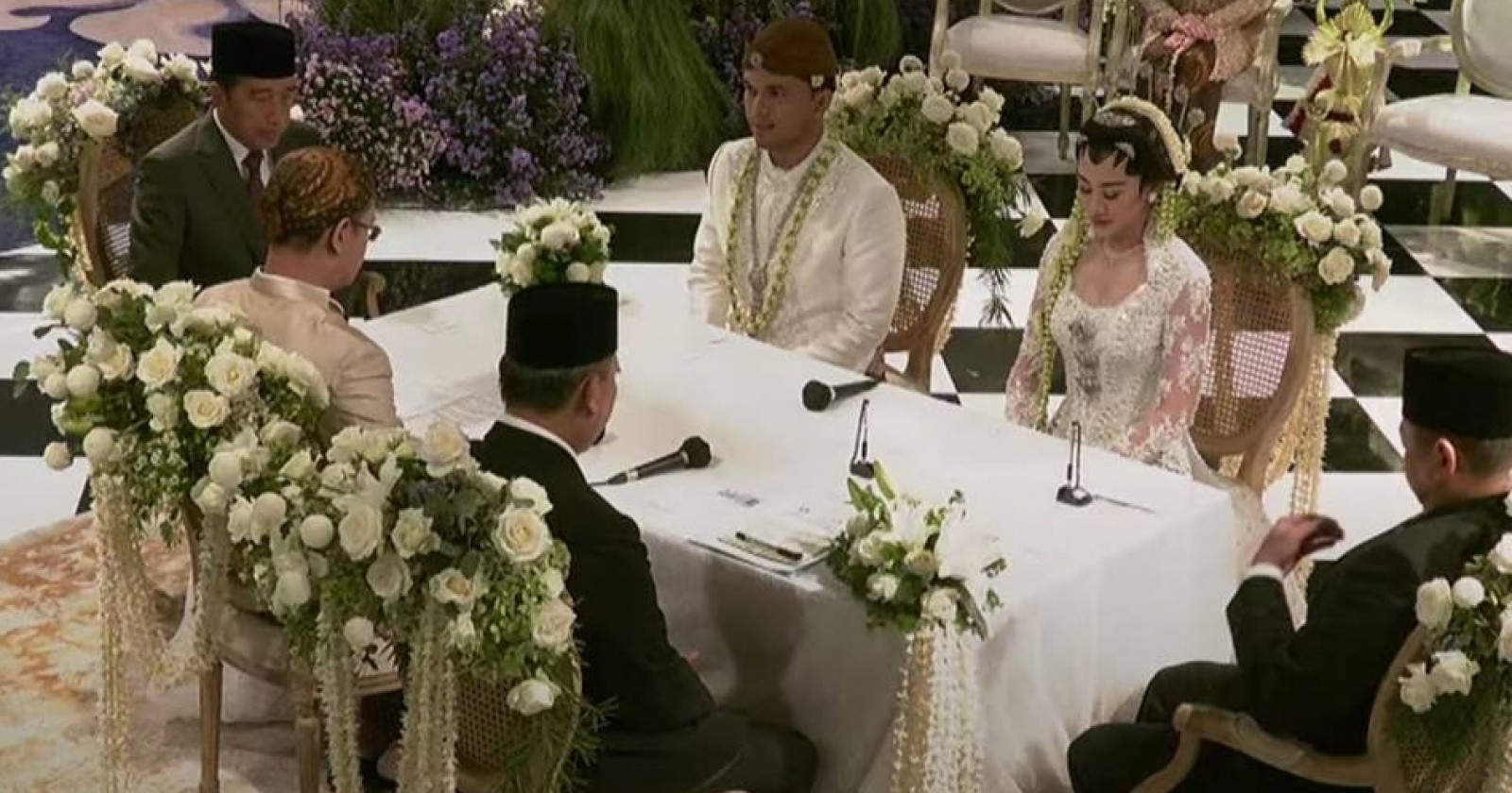 Akad nikah Thariq dan Aaliyah digelar pada Jumat pagi di Hotel Raffles, Jakarta Selatan. Bukan hanya keluarga dan kerabat dekat, kehadiran Presiden Joko Widodo dalam acara ini juga turut menjadi sorotan.