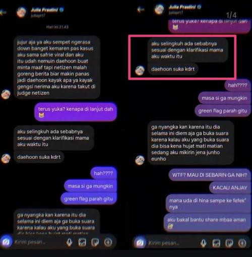 Na Daehoon akhirnya memberikan respon terkait klaim mantan istrinya, Julia Prastini atau Jule yang mengaku menjadi korban KDRT dirinya. Sebelumnya, Jule sempat membuat heboh dengan pernyataan yang menyatakan alasannya berselingkuh lantaran mantan suaminya kerap melakukan KDRT atau Kekerasan Dalam Rumah Tangga.